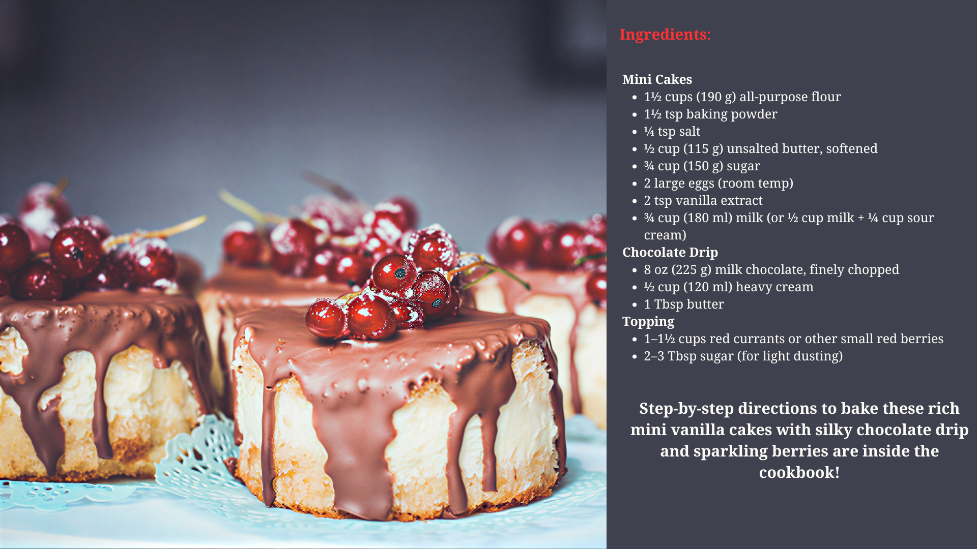 Inside, you’ll get dozens of step-by-step recipes designed for real home kitchens: simple ingredients, clear instructions, and dishes that look impressive without being complicated. Think creamy mashed potatoes, golden roasts, cheesy casseroles, gingerbread treats, peppermint desserts, and warm, spiced drinks for every gathering.